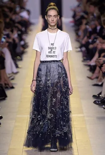 Maria Grazia Chiuri used her debut collection (Spring/Summer 2017) to send a strong political message with her t-shirts bearing the logo “We Should All Be Feminists.”